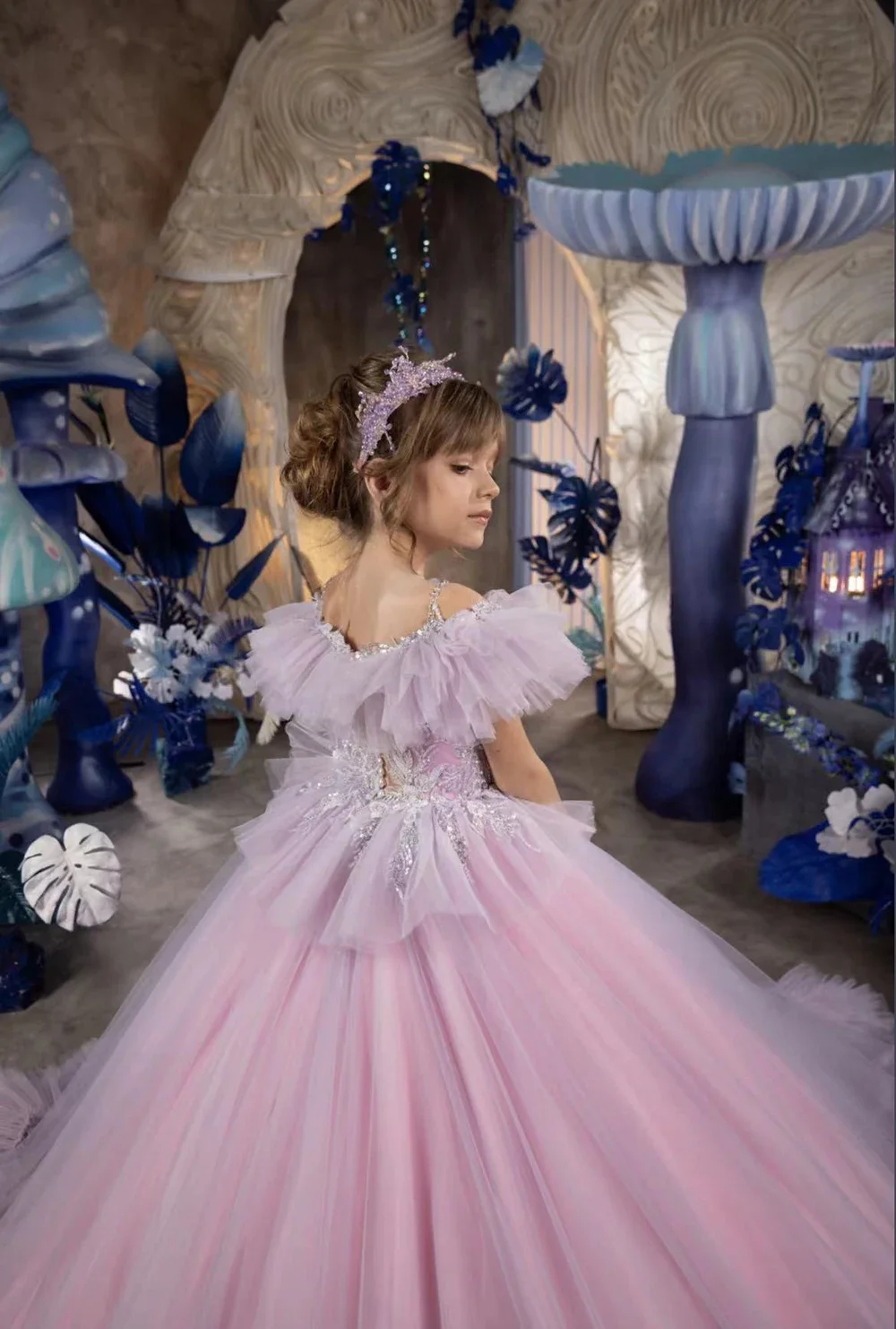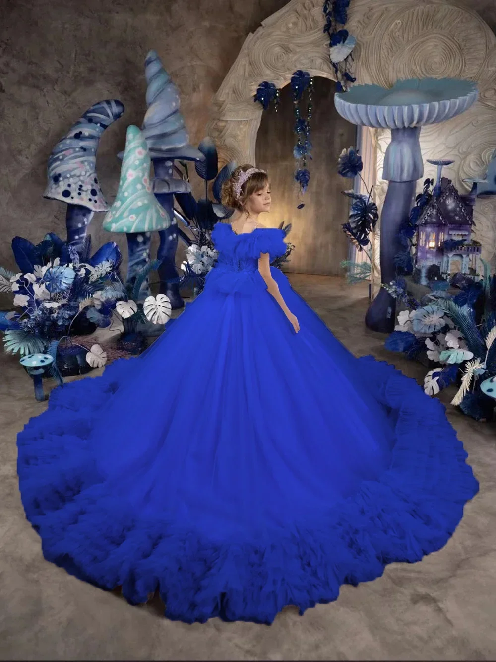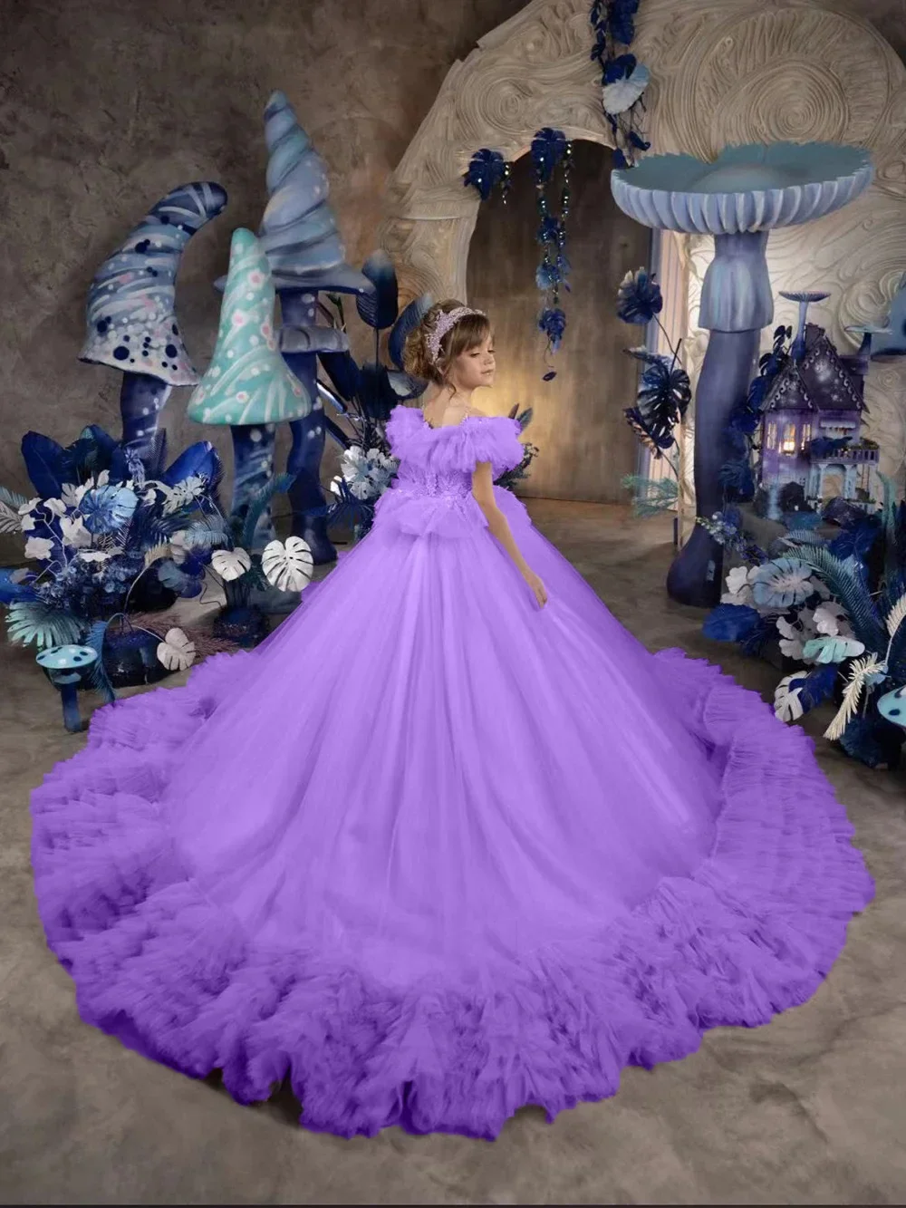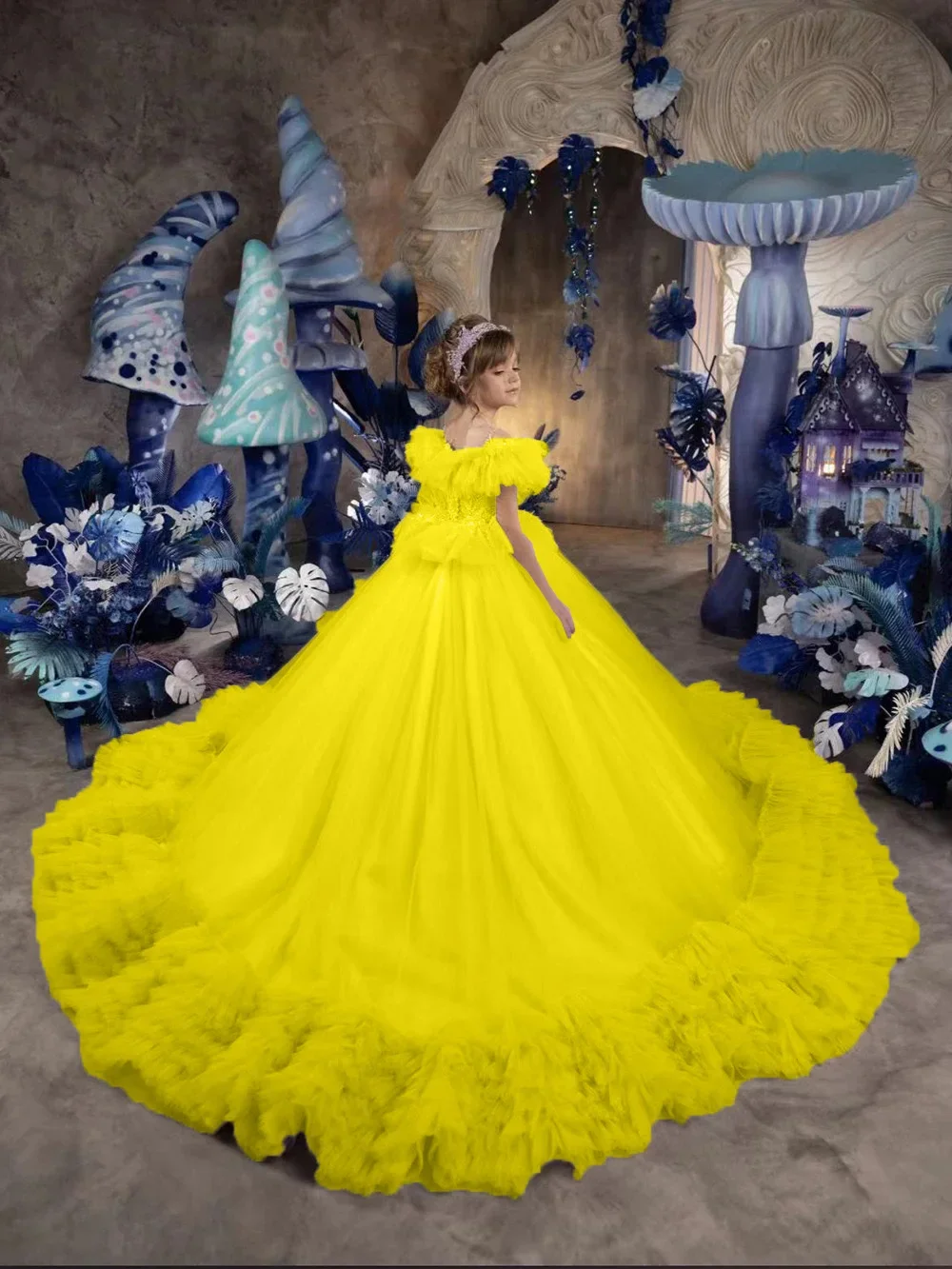 Vestido de novia con volantes hasta el suelo para niña, para cumpleaños, primera comunión, personalizado, de princesa, para niña de las flores