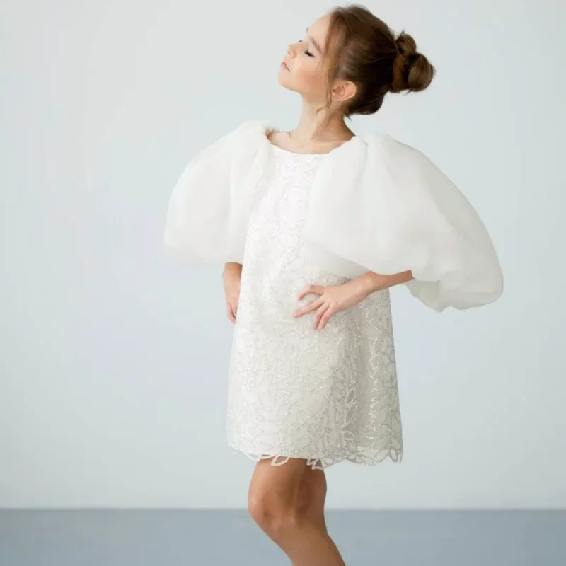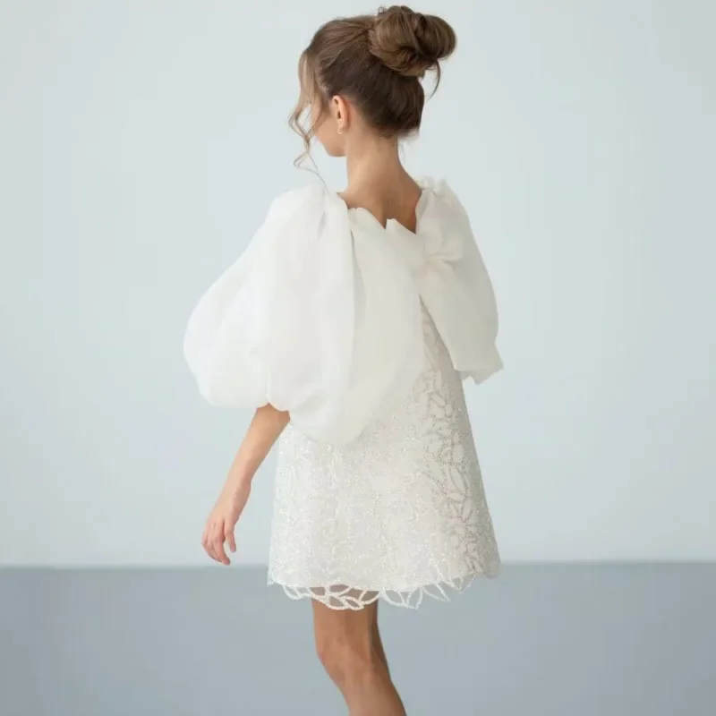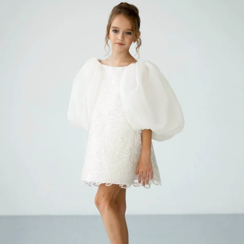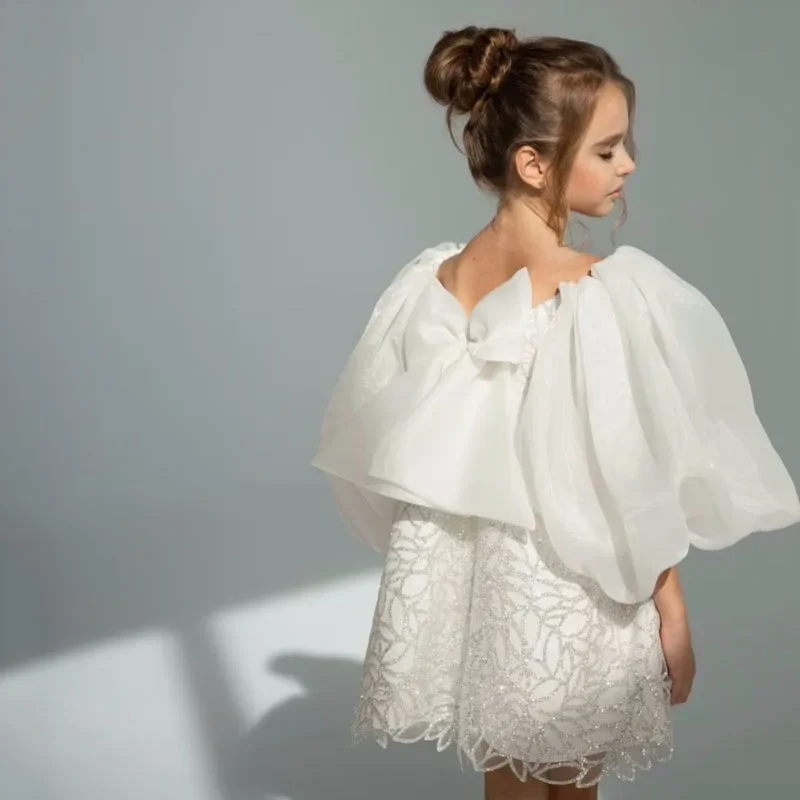 Vestidos de niña de las flores personalizados con bordado floral blanco y lazo de manga corta para bodas, cumpleaños, banquetes, primera comunión.