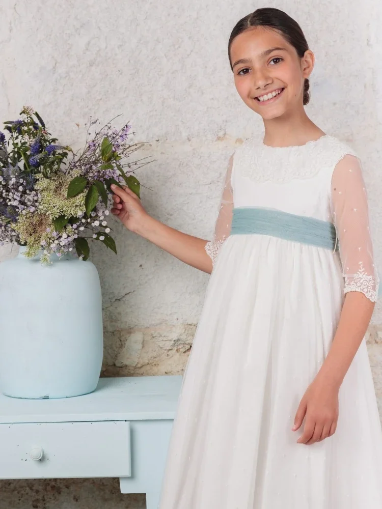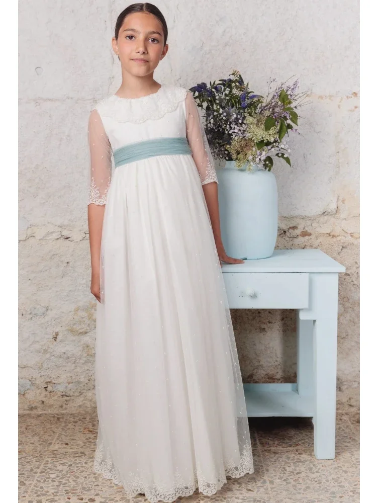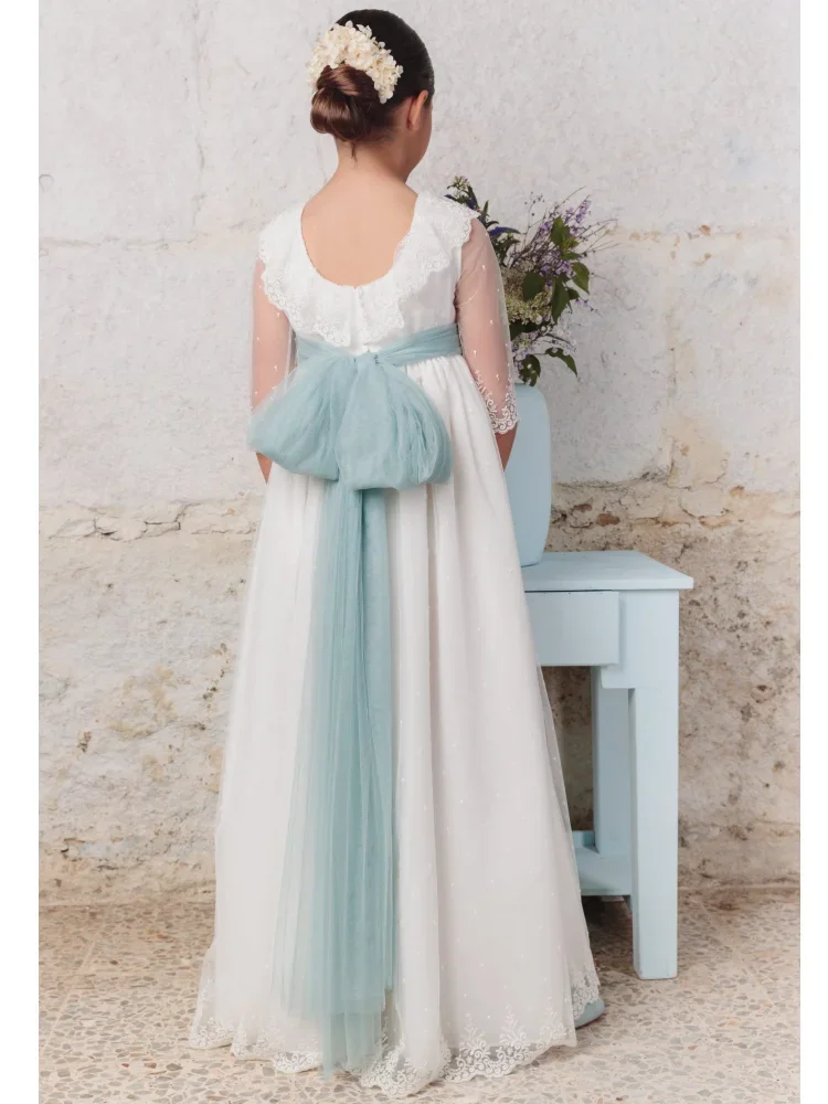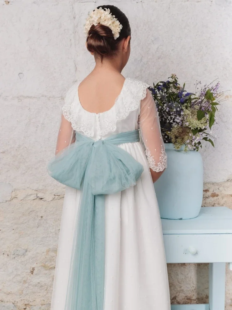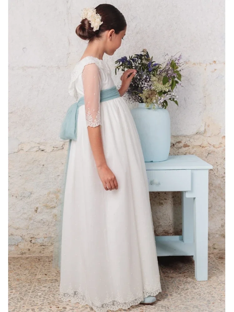 Apliques de encaje blanco con lazo, medias mangas para bodas, fiestas de cumpleaños, banquetes, vestidos de princesa y vestidos de niña de las flores.