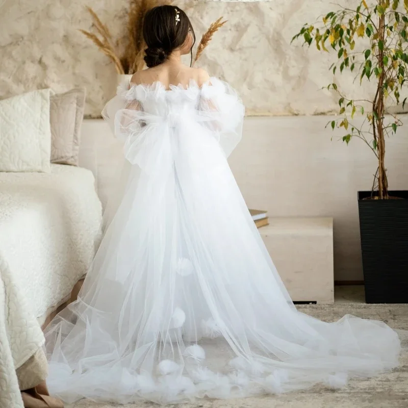 Vestido de tul blanco con lazo y flores, manga larga, para boda, fiesta de cumpleaños, banquete, princesa, niña de las flores