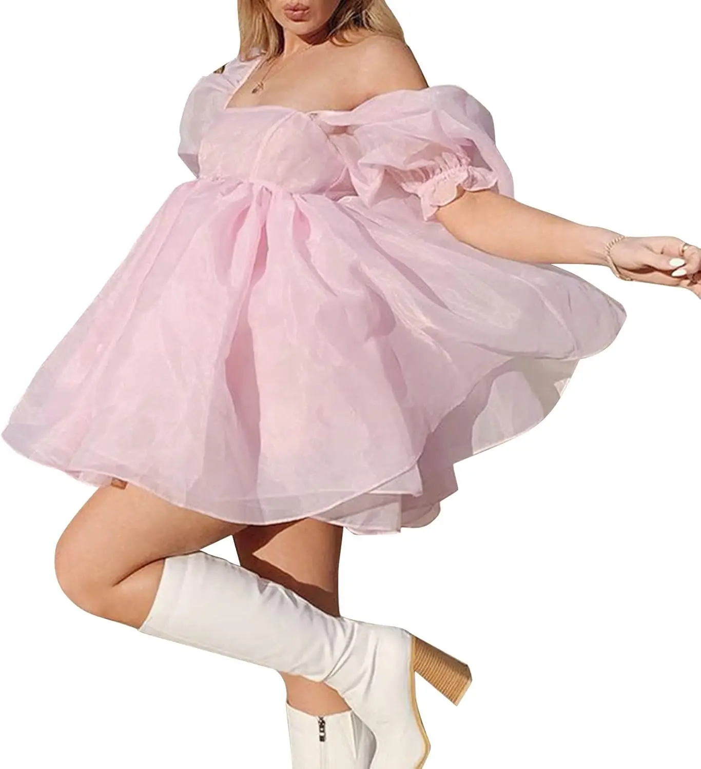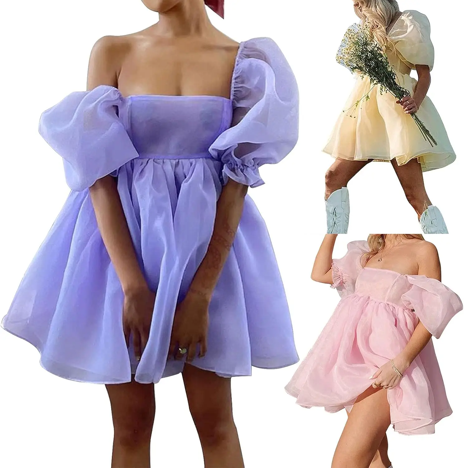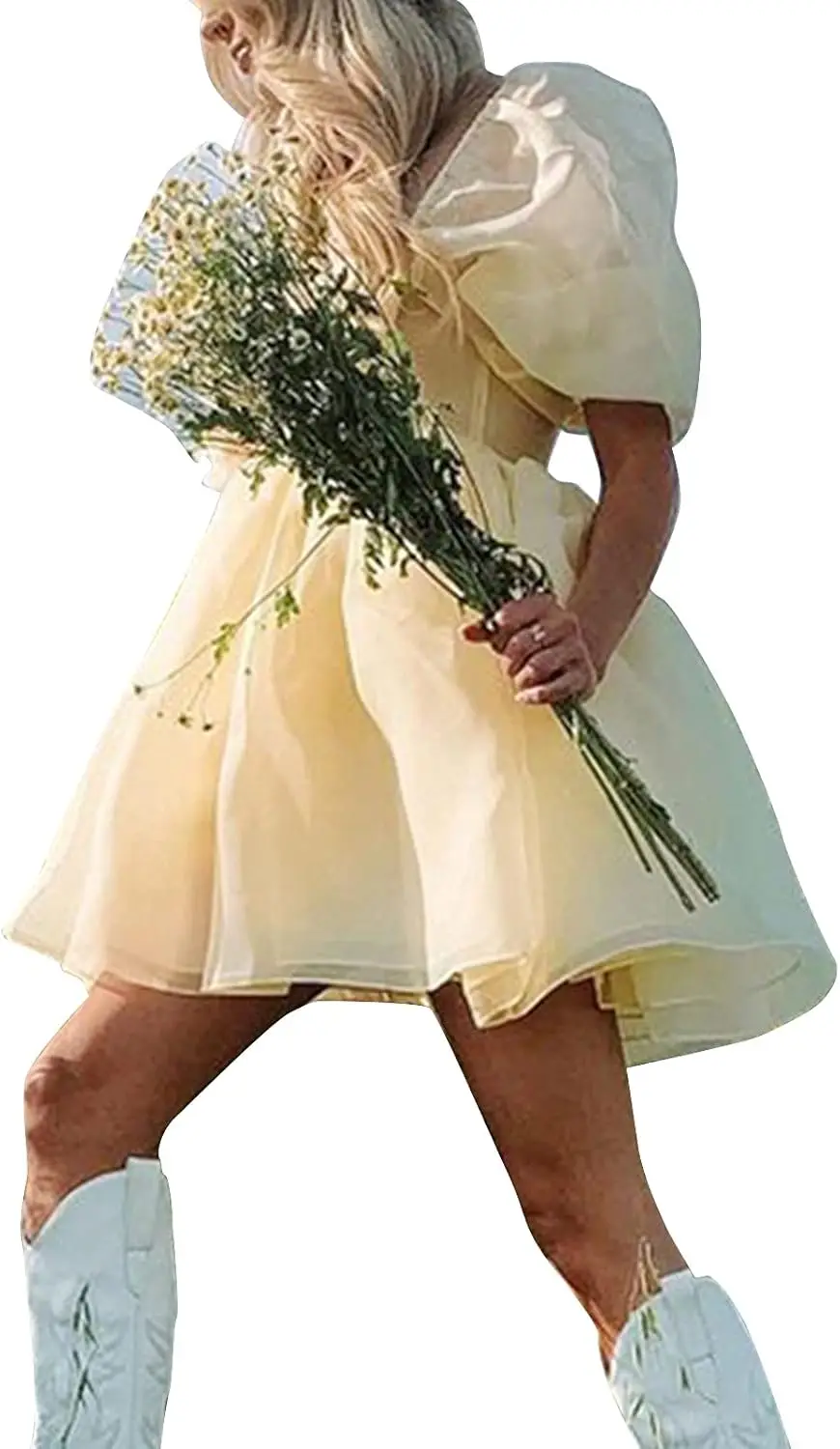 Vestido corto de fiesta de princesa con hombros descubiertos, volantes, mangas cortas y malla esponjosa para mujer, vestido de graduación