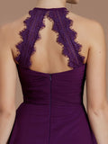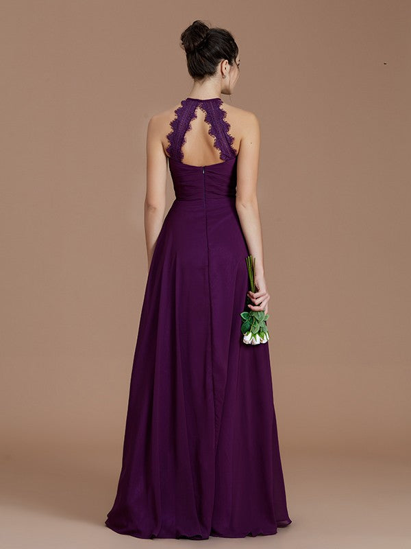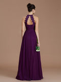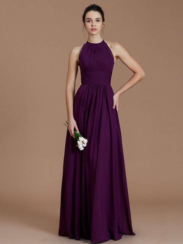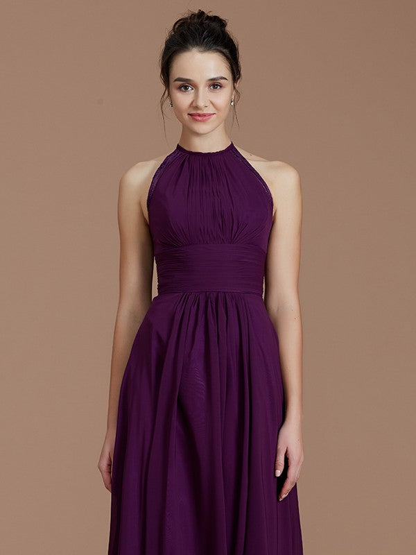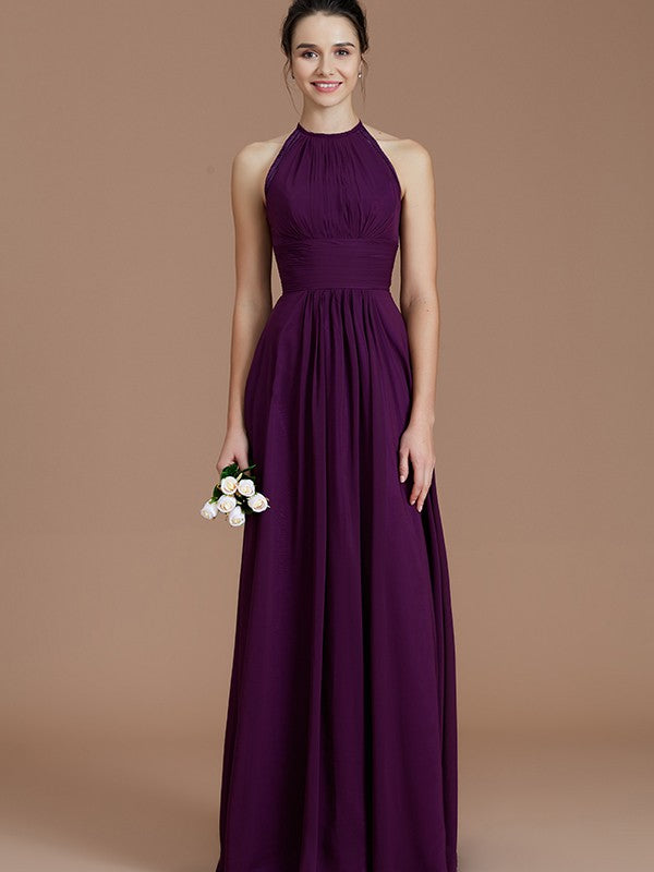 A-Line/Princess Halter Sleeveless Ruched Floor-Length Chiffon Bridesmaid Dresses Evening Dress