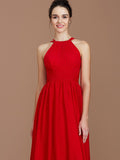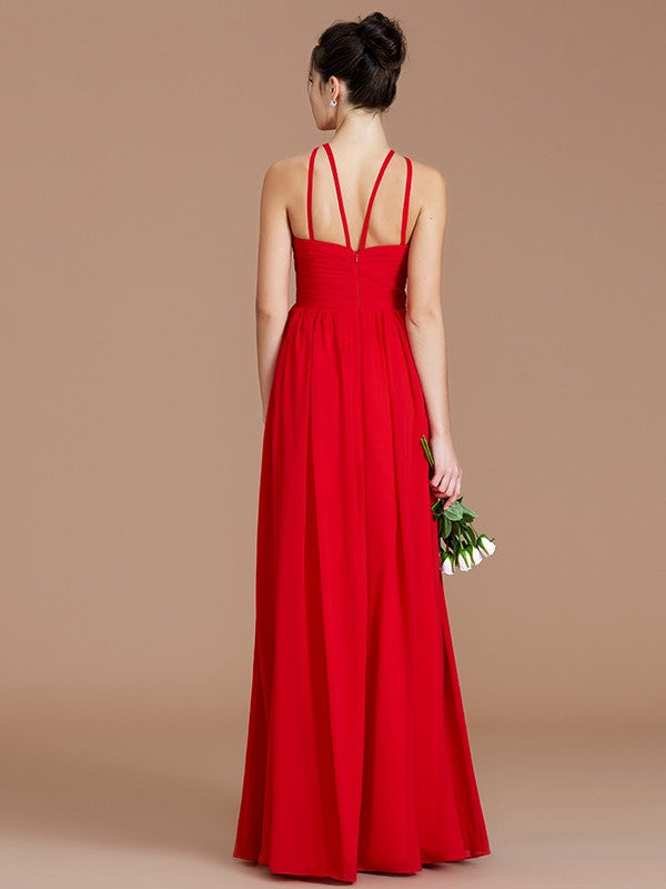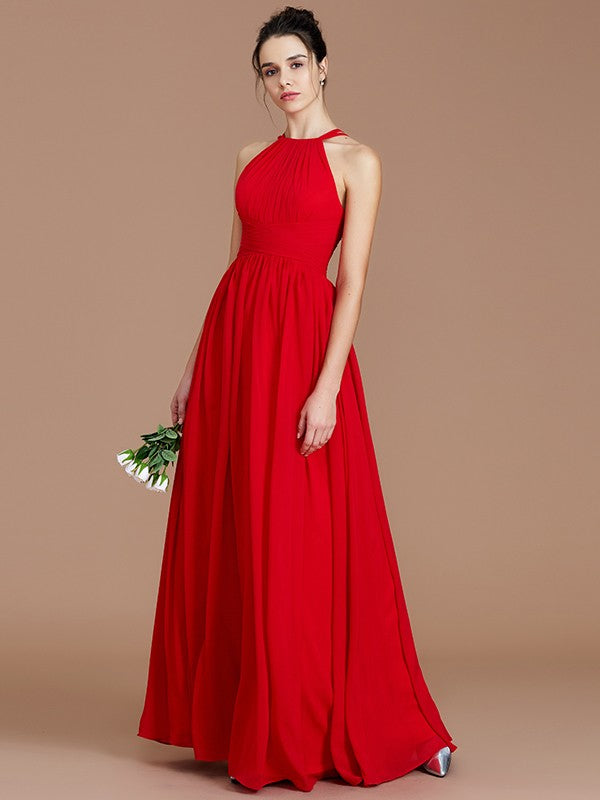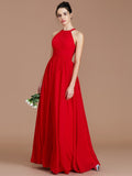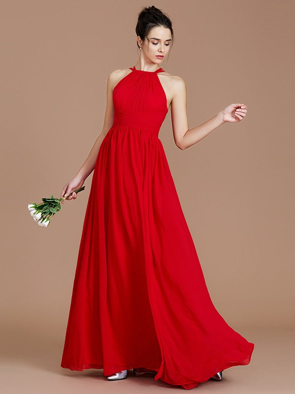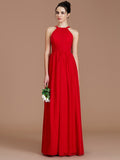 A-Line/Princess Halter Sleeveless Ruched Floor-Length Chiffon Bridesmaid Dresses Evening Dress